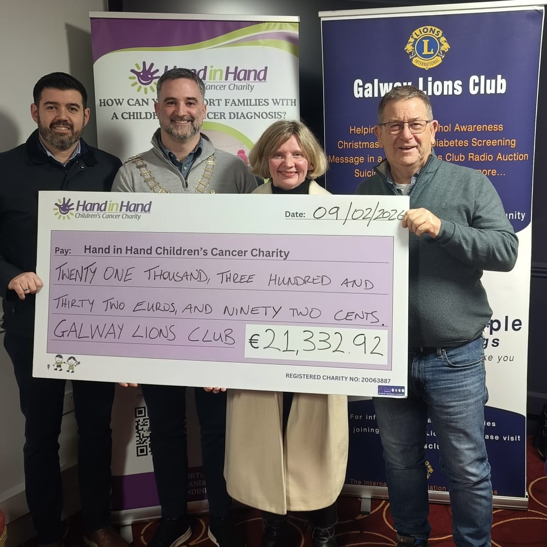 For over 20-years Lions Clubs in Galway have organised a sponsored swim, during the month of November. Individual club members and friends braving the cold seas, to raise money for our causes. In our November 2025 swim we raised €21,333 for Hand in Hand.